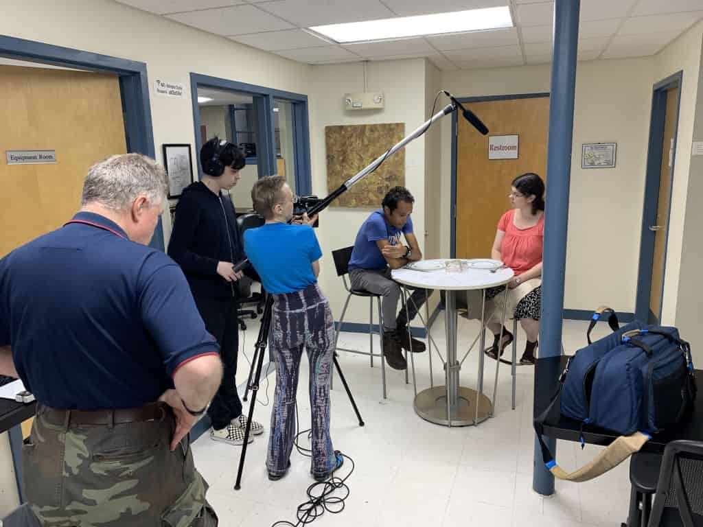 Ride with the Studio Knights! Almost every Wednesday evening, beginning at 6 pm, ACMi invites local volunteers and producers of all shapes & sizes (and ages and levels of experience) to hang out and learn new skills! You can be part of the crew for a production; take a workshop on how to make documentaries or animations or feature films; or work on a group project promoting or covering a town event. What you can rely on each and every time, though, is meeting, collaborating, and connecting with community members…and pizza! It’s a lot of fun – come see for yourself!